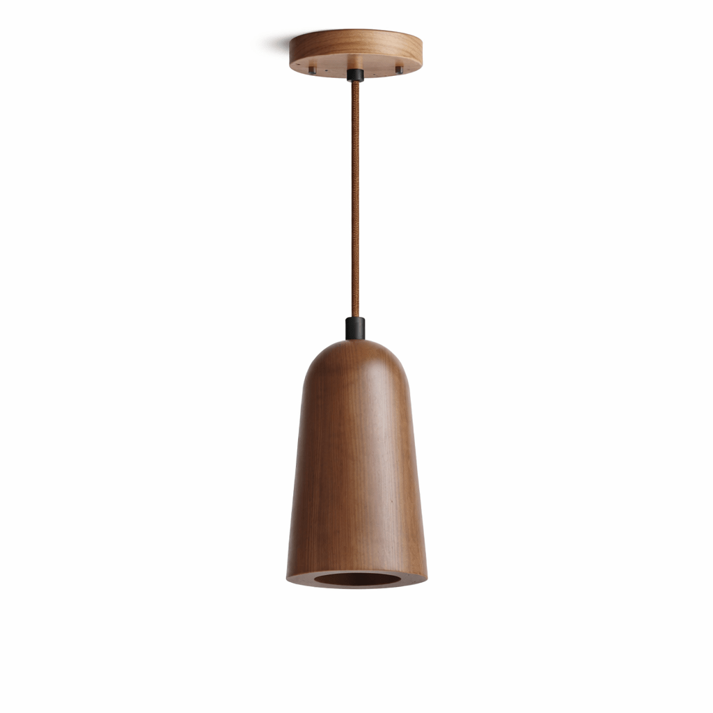 The Alven Taper Pendant is a refined expression of natural minimalism. Crafted from solid wood, the shade features a smooth tapered silhouette that highlights the organic grain patterns and warm tone of the timber. Its sculptural form gently narrows toward the base, creating a focused downward glow ideal for intimate lighting.