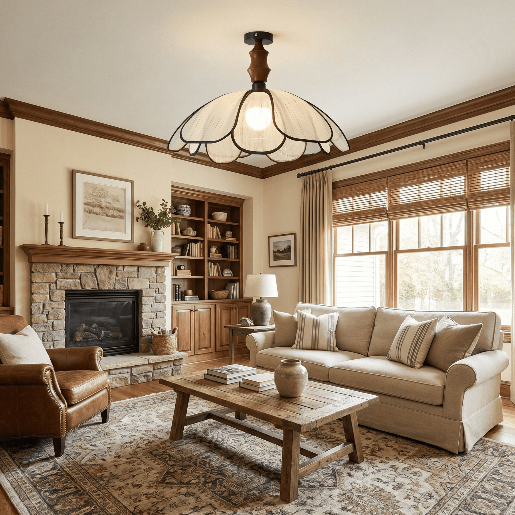 Ceiling Fixtures: Bedrooms benefit from soft, ambient lighting. Use the room dimension formula to ensure the ceiling fixture is properly scaled. Semi-flush or flush mounts work well for general lighting, while sconces or bedside lamps provide focused task lighting.